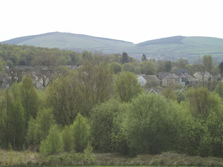 This photo shows a view over the village and beyond Neath to the mountains above Cimla and Briton Ferry. photograph also taken from ground level.